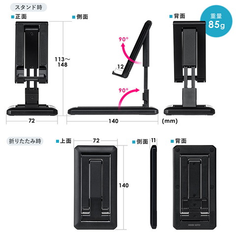 サンワサプライ、完全フラットになるスマホスタンド、1580円