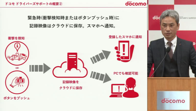 ドコモ、緊急時に家族とつながるドライブレコーダーを発売(5/18)