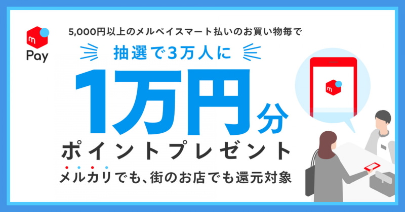 メルペイ、「メルペイスマート払い」の利用で最大1万円分のポイントを還元するキャンペーン