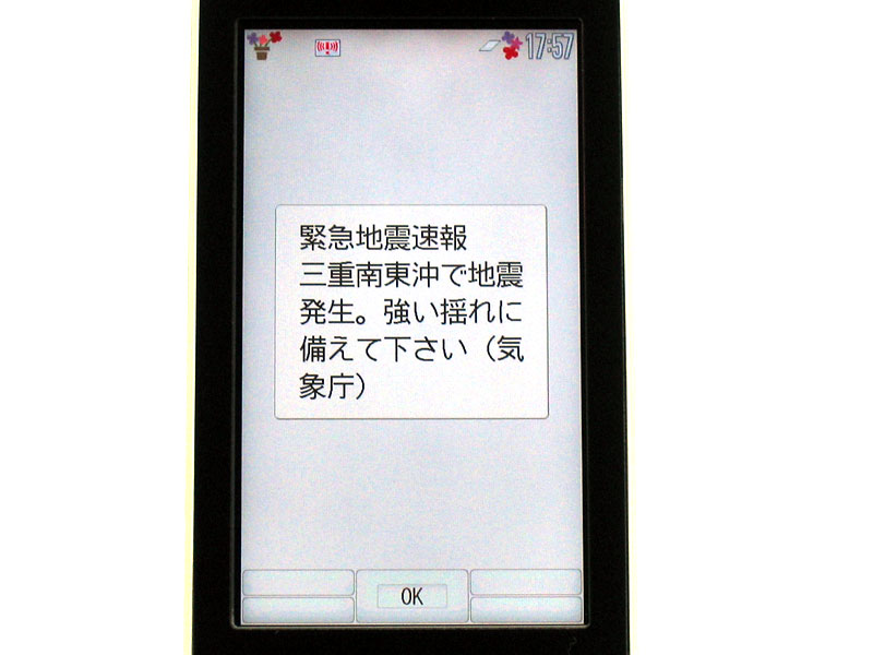 緊急地震速報などを通知する「エリアメール」