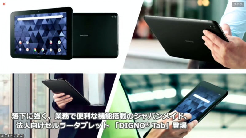 • タフネスLTEタブレット「DIGNO Tab」、KDDIの法人向けで登場