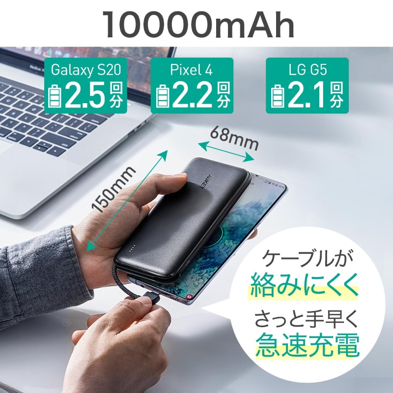 AUKEY、USB Type-Cケーブル内蔵の1万mAhモバイルバッテリー「Basix Sling」を23日に発売