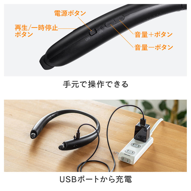 サンワサプライ、イヤホンにもなるウェアラブルスピーカー、1万2980円