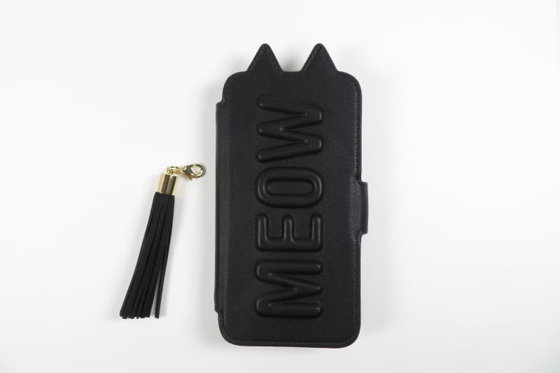 Tassel Tail Cat Flip Case for iPhoneSE(第2世代)(BLK)