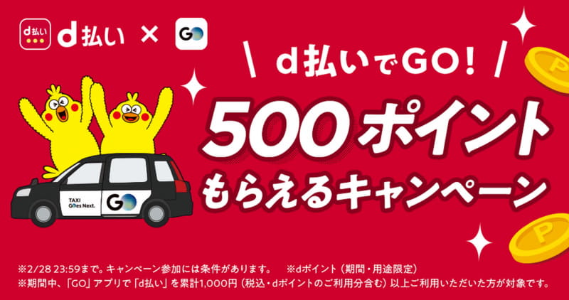 「d払い」でタクシーアプリ「GO」、初回利用で最大20%還元