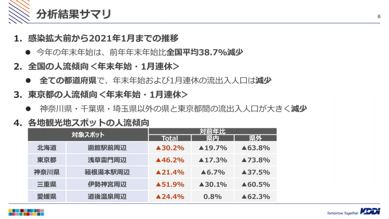 KDDI、年末年始の人流分析結果を公表、全国的に移動自粛傾向