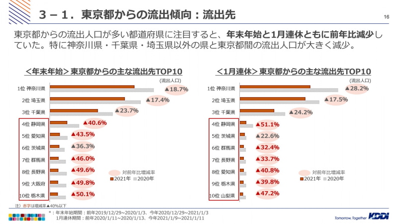 KDDI、年末年始の人流分析結果を公表、全国的に移動自粛傾向(6/24)