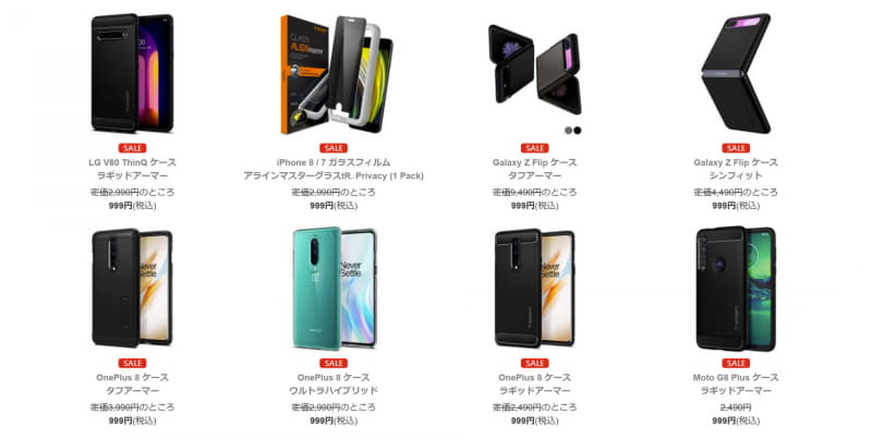 Spigenがアウトレットセール、ケースや保護ガラスが999円~
