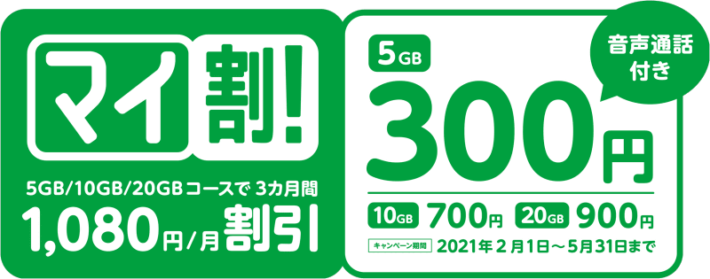 mineo、3カ月間1080円引きのキャンペーン「マイ割」