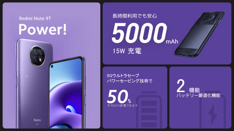• ソフトバンク「Redmi Note 9T」の128GBモデル、17日以降順次発売
