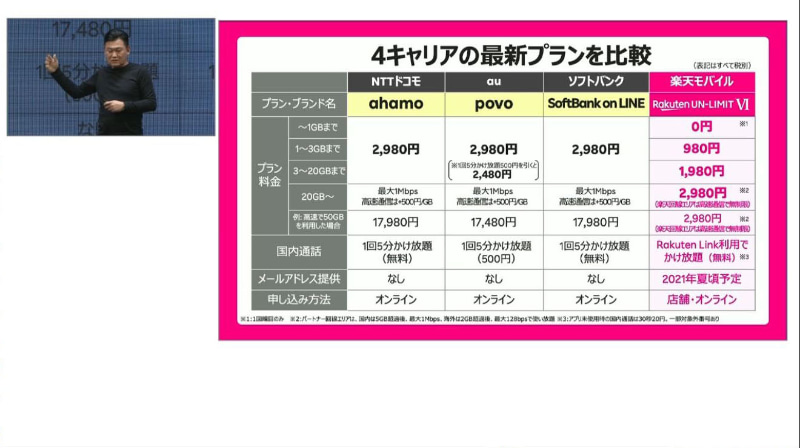 • 楽天モバイル、新料金プラン発表会の中継サイトをオープン