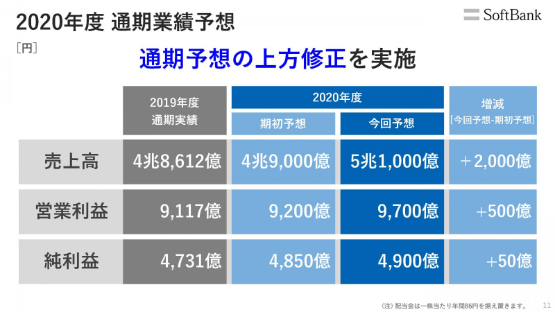 ソフトバンク、2020年度の業績予想を上方修正――売上高5兆円超えの見通し(11/43)