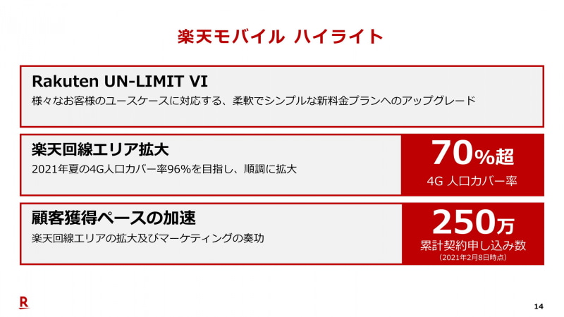 楽天、20年度第4四半期決算発表、モバイルは赤字も「将来への前向きな投資」(7/20)