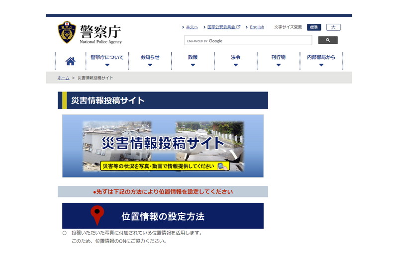 警察庁、大規模災害時に被災画像を募集する「災害情報投稿サイト」の運用を開始