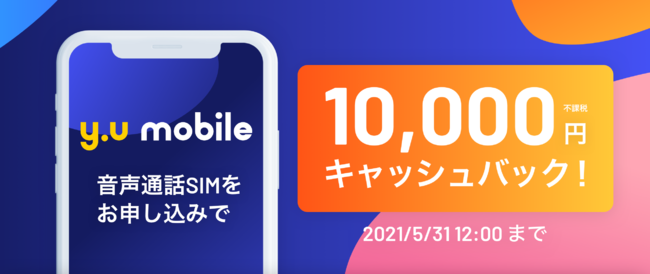 y.u mobileで1万円キャッシュバックのキャンペーン、3月スタート