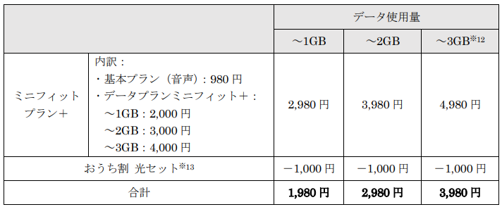 ソフトバンク、最大3GBの小容量プラン「ミニフィットプラン+」発表、3月17日から