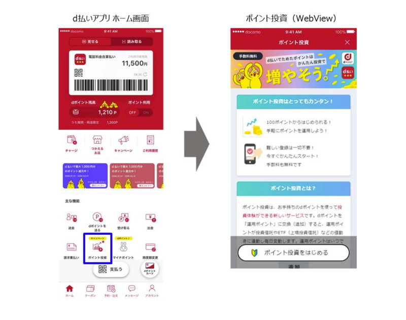 「d払い」アプリから「ポイント投資」を利用可能に