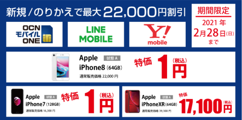 ゲオで格安SIMとセットで中古iPhoneが1円からのセール、28日まで