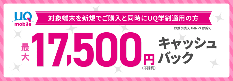UQモバイル新規契約で最大1万7500円のキャッシュバック
