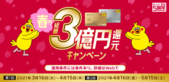 ドコモの「dカード」、3万円以上の利用でdポイント当たる「春の総額3億円還元」