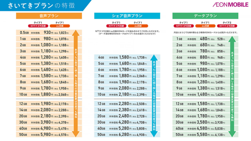 • イオンモバイルが新料金「さいてきプラン」、1GB単位で選べる
