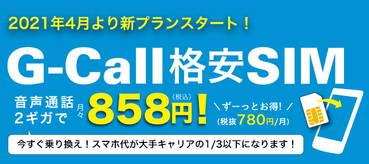 G-Callの新プラン、音声対応で2GBが858円から