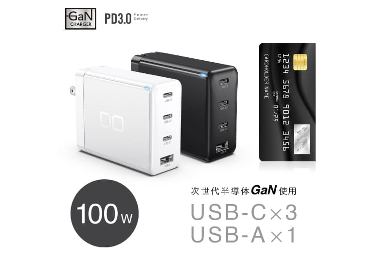 CIO、クレカサイズでプラグ折りたたみ式、最大100W対応のUSB充電アダプタ