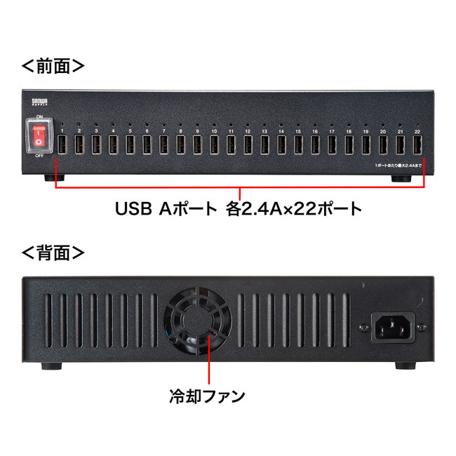 サンワサプライ、スマホなど22台同時充電できるUSB充電器