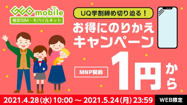 UQ mobile、学生と家族も最大12カ月間、最大1000円を割り引く「UQ学割」、11月20日から