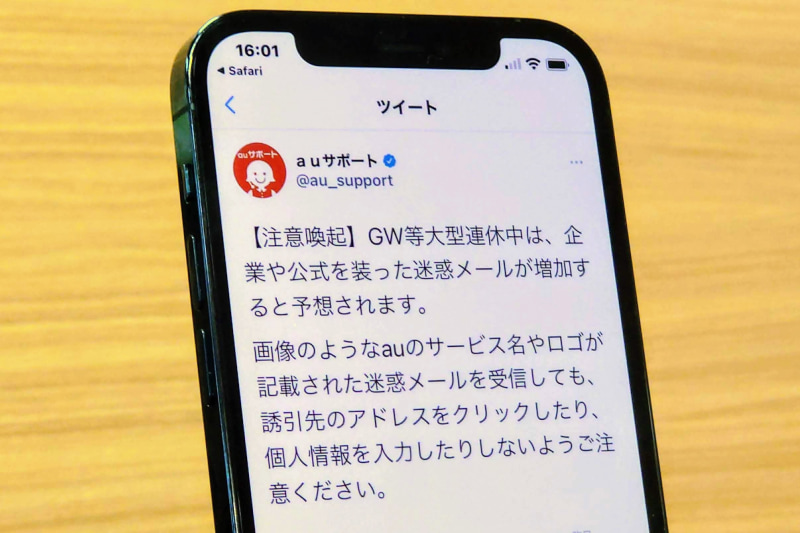 「受信しても绝对アクセスしないようにしろ」、auサポートのTwitterアカウントが注意喚起のツイート