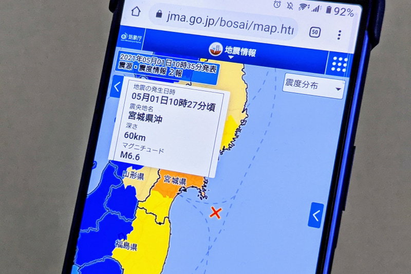 1日午前に宮城県沖でM6.6の地震、携帯4社の通信設備に影響なし
