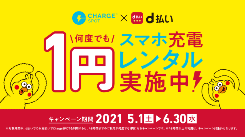 ChargeSPOT、「PayPayならスマホ充電レンタルが1円!」キャンペーン