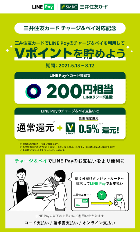 LINE Pay、「チャージ&ペイ」の登録可能な対象カードを拡大 キャンペーンも