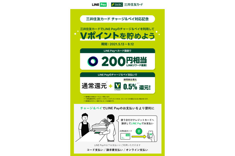 LINE Pay、「チャージ&ペイ」の登録可能な対象カードを拡大 キャンペーンも