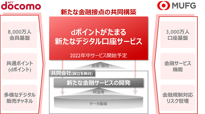 ドコモと三菱UFJ銀行が提携、「dポイントが貯まるデジタル口座」提供へ