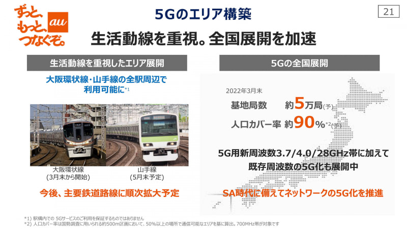 au 5G、全国80の主要駅周辺でエリア整備完了
