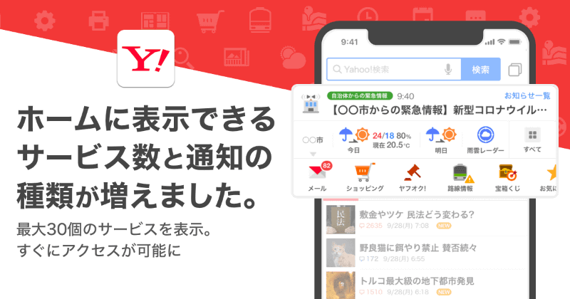「Yahoo!JAPANアプリ」が自治体からの緊急情報の通知などに対応