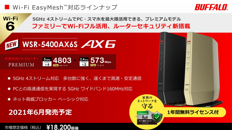 バッファロー、6GHz帯対応のWi-Fiルーター「WNR-5400XE6」