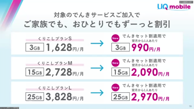 • UQ mobileが「でんきセット割」、スマホ料金を月990円~に