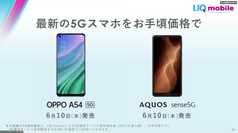 • UQ mobileから5Gスマホ「OPPO A54 5G」が6月10日発売