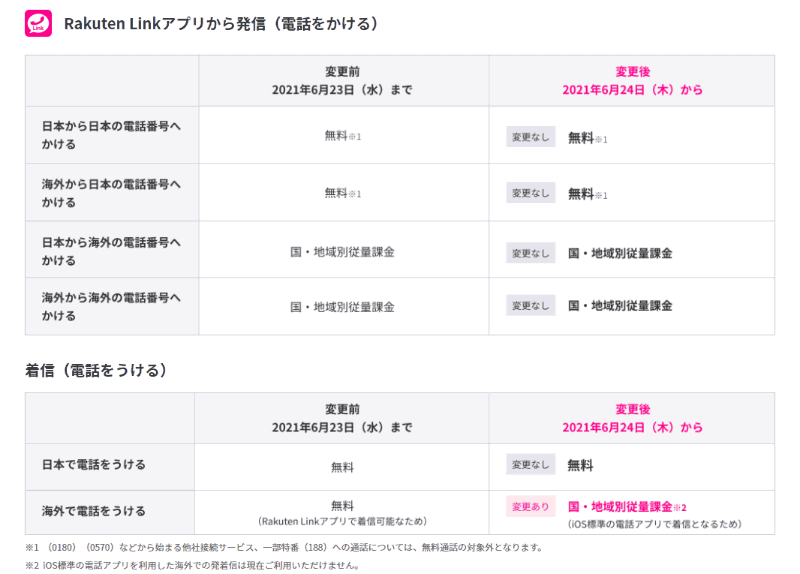 • iOS版「Rakuten Link」の仕様変更、7月6日から