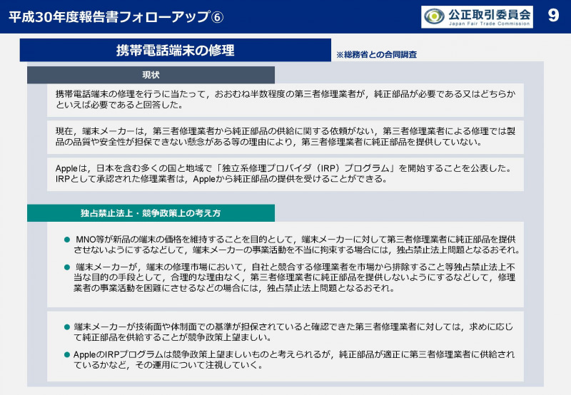 公取委、携帯電話市場における市場競争の課題に関する調査結果を公表(9/15)