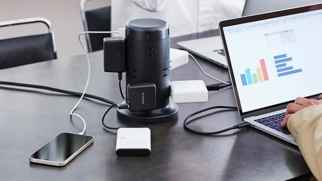 サンワサプライ、差込口を90度回せるUSBポート付き電源タップ