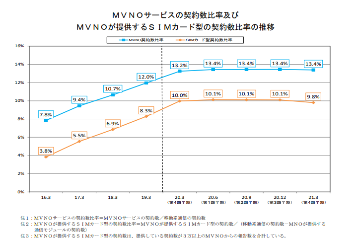 楽天モバイルのシェアは1.5%に――2021年3月末の総務省調査(7/9)