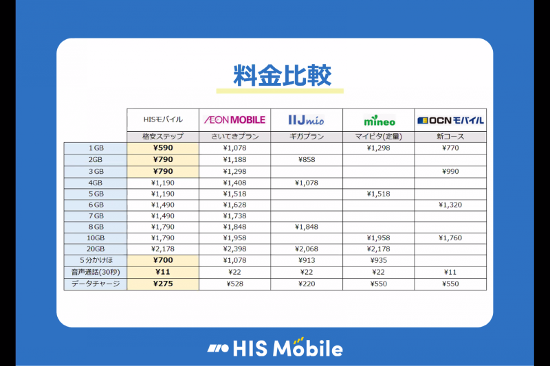 • HIS Mobileの新料金プラン「格安ステップ」、音声SIMで1GB590円~