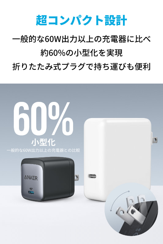 • アンカー、最大65W対応でUSB Type-C2ポート搭載のACアダプター