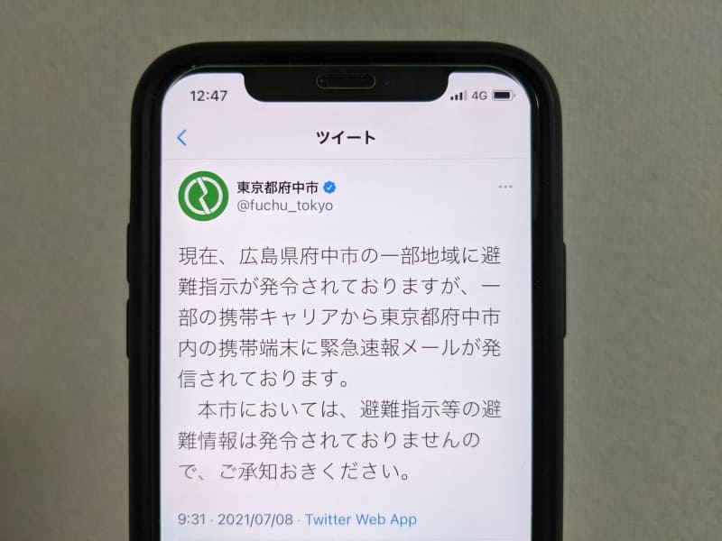 楽天モバイルが「避難指示」緊急速報メール誤送信、広島と東京の「府中市」違いで