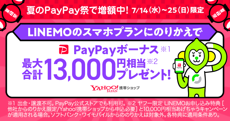「夏のPayPay祭」本日7月1日スタート、7月25日には最大100%還元も