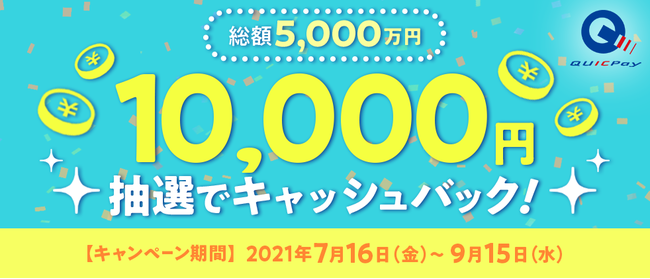 QUICPayを利用したキャンペーン 5000名に1万円キャッシュバック