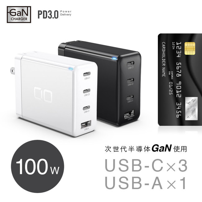 CIO、クレカサイズでプラグ折りたたみ式、最大100W対応のUSB充電アダプタ
